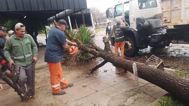 Como parte de los servicios que presta la Comuna, se organizaron cuadrillas para intervenir en lugares donde se produjeron problemas, en especial por la caída de ramas y, en menor medida, árboles. En cuanto al sistema de desagües, el mismo funcionó de manera correcta, no registrándose problemas de anegamientos.