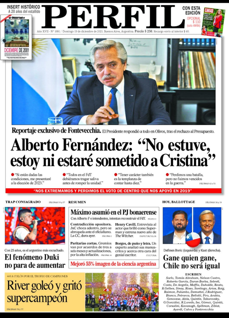 El presidente de la Nación, Alberto Fernández, brindó una entrevista exclusiva al diario Perfil, que fue realizada por su CEO, Jorge Fontevecchia.