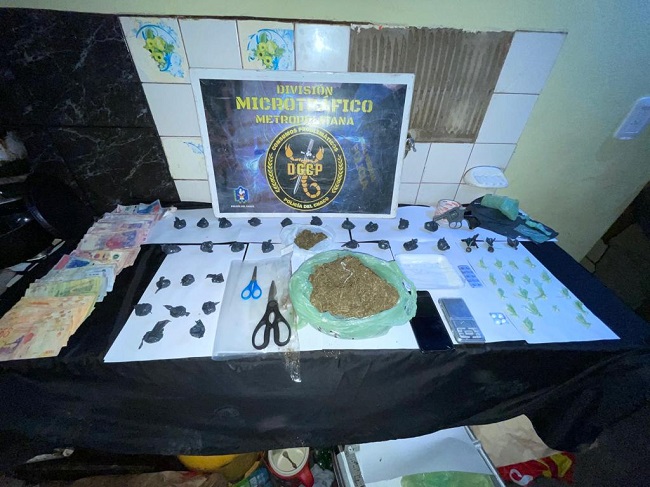 Durante la inspección, los efectivos secuestraron 27 envoltorios de marihuana con un peso de 472 gramos, 21 bochitas de cocaína y 14 pastillas de clonazepam.
