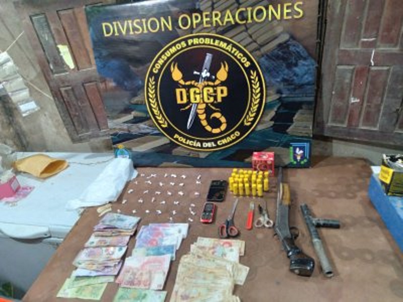 Ayer por la tarde, los agentes de la División Operaciones dependiente de la Dirección General de Consumos Problemáticos, llevaron a cabo un allanamiento. Secuestraron varias bochitas con cocaína, dinero en efectivo y un arma de fuego. El morador quedó detenido.