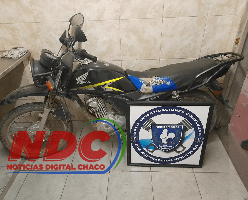 La División Sustracción Vehicular, toman conocimiento del hecho, realizando tareas investigativas, recorridas y averiguaciones por la localidad de Barranqueras, que  el Motovehiculo estaba por ser comercializado en Av. Edison y Nicolás Roja Acosta.