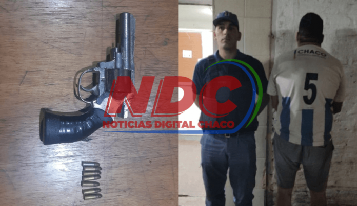 Seguidamente personal policial dialogó con el masculino y solicitaron colaboración del Servicio Externo de dicha dependencia, donde el mismo accedió a salir al exterior de la vivienda y fue reducido, entre sus prendas de vestir tenia un arma de fuego tipo revolver calibre 22 el cual fue secuestrado.