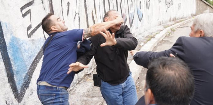 “Mentiroso, renunciá”, fueron algunos de los insultos que le dijeron los distintos compañeros de Barrientos. Unos minutos después lo redujeron y lo pusieron contra un paredón, mientras personal de la Policía de la Ciudad de Buenos Aires realizó un cordón para proteger al ministro.