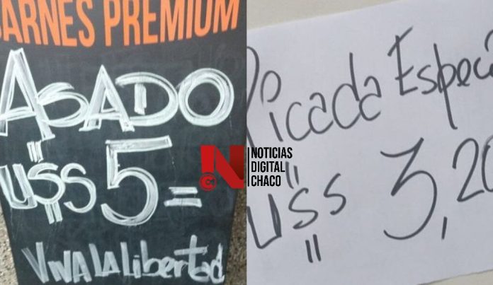 Por caso, el kilo de asado lo vende a 5 dólares o la carne molida o picada especial a 3,20 dólares.