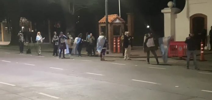 Tras una convocatoria a través de las redes sociales, un grupo de argentinos se reunieron frente a la Quinta de Olivos en rechazo a las decisiones del juez Lino Mirabelli, quien aceptó el pago del matrimonio presidencial por las fiestas organizadas en plena cuarentena.