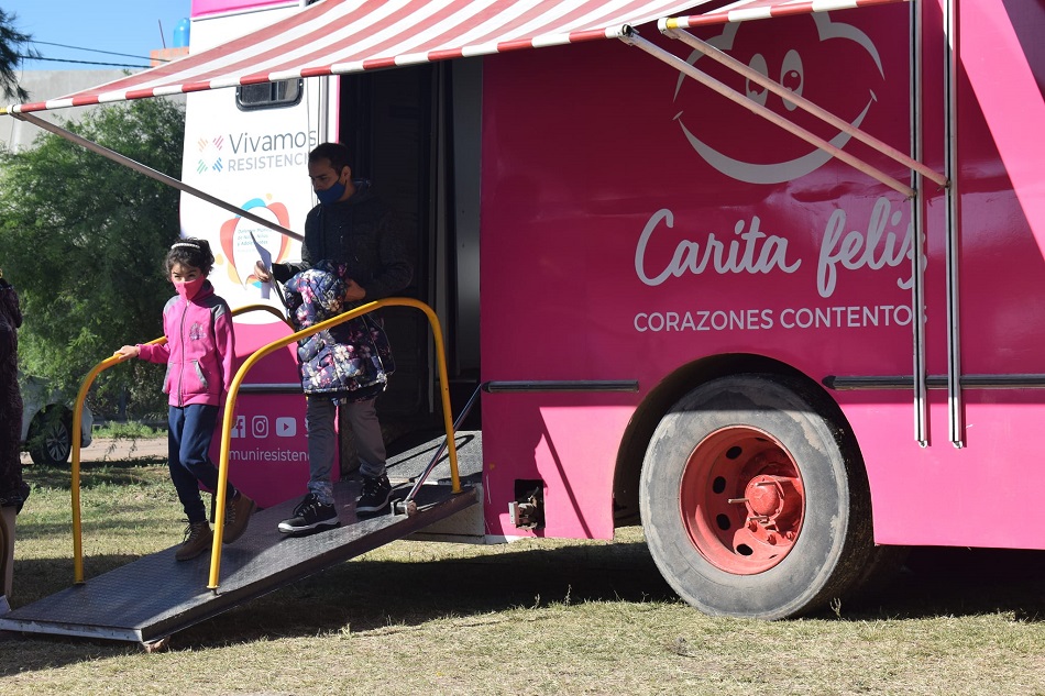 Carita Feliz cuenta con un colectivo preparado que funciona como consultorio, presentándose en los barrios más alejados de los centros de salud, centros comunitarios u oficinas municipales. Para ello, se coordina con escuelas, clubes, comedores, merenderos, iglesias y todo tipo de instituciones barriales.
