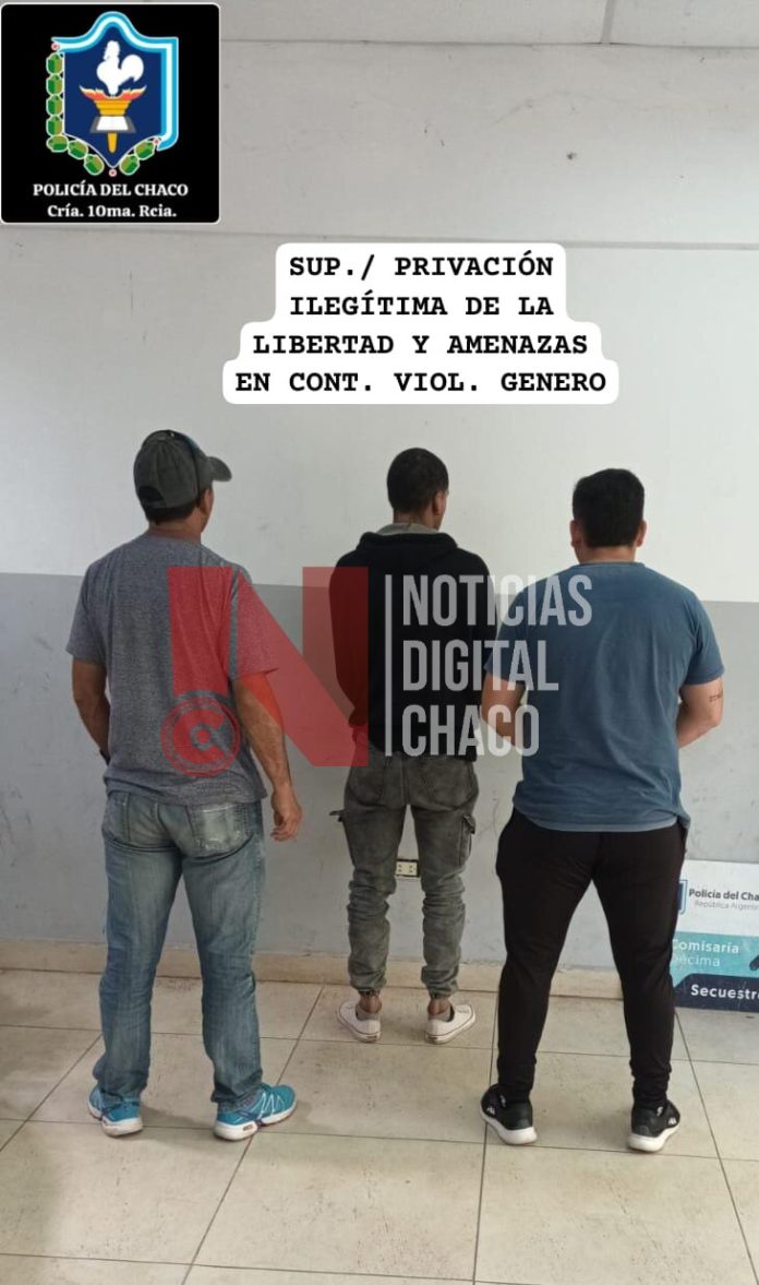 Tras su detención, fue puesto a disposición de la Justicia y se le notificó la aprehensión por los delitos de privación ilegítima de la libertad y amenazas con arma blanca en contexto de violencia de género.