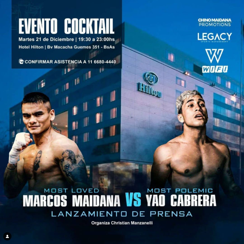 “El martes 21 de diciembre, desde las 19:30, en el Hotel Hilton, se realizará la conferencia de prensa de mi pelea contra Yao Cabrera”, anunció el boxeador a través de sus redes sociales.