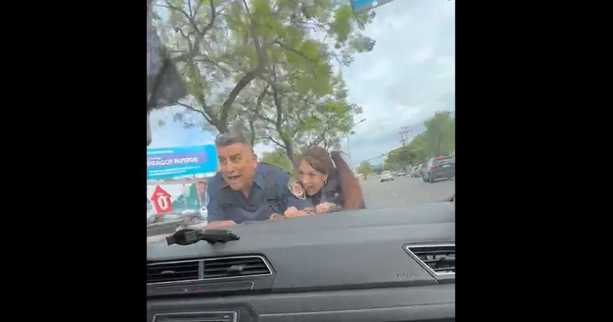 En los videos se puede ver como tres policías intentaron detener el avance de un vehículo Volkswagen Gol. En el video se escucha una voz de una chica que dice “Coral no bajemos” y ese nombre se viralizó.