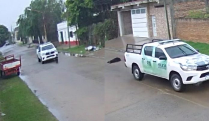 Un indignante hecho se registró este martes por la mañana en la localidad correntina de Goya, en donde un patrullero de la Policía de Corrientes atropelló y mató a un perro en la vía público. Todo esto ocurrió por calle Catamarca casi Juan XXIII del barrio Scofano.