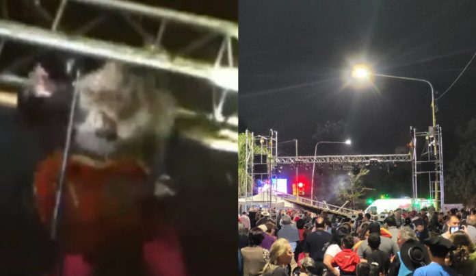 Analía Espíndola y su grupo realizaban su presentación en el escenario montado en la plazoleta Mario del Tránsito Cocomarola cuando cerca de las 20 del domingo la estructura de la iluminación LED cayó sobre ellos.