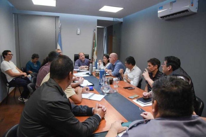 Este martes, el ministro de Gobierno, Juan Manuel Chapo, junto a las ministras de Desarrollo Social y Salud, María Pía Chiacchio Cavana y Carolina Centeno, respectivamente, con el ministro de Educación Aldo Lineras y funcionarios de otras áreas del Estado, se reunieron para definir un plan de acción ante la emergencia hídrica que vive la provincia tras las últimas lluvias.