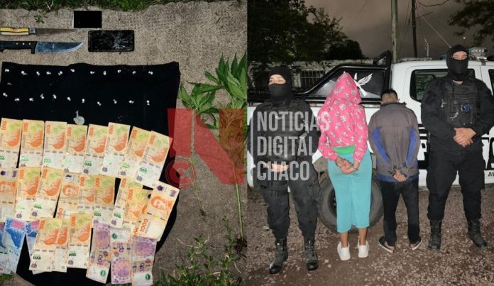 Durante la intervención, las agentes secuestraron un celular Samsung A01, la suma de $22.600 en efectivo, y 22 envoltorios y una bocha que, tras las pruebas de campo, dieron positivo para cocaína con un pesaje de 12.1 gramos. También se encontraron dos plantines de aproximadamente 40 centímetros de altura, los cuales arrojaron resultado positivo para marihuana. Además, los agentes incautaron dos armas blancas.