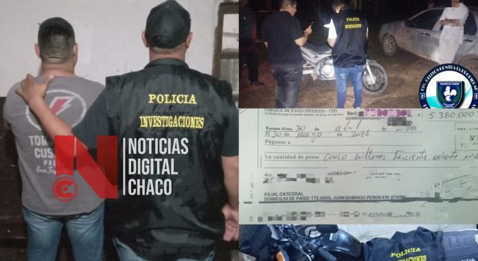 Tras la denuncia, el personal de la División Delitos Contra la Propiedad inició una investigación. Como resultado, localizaron al supuesto estafador en el barrio El Planetario de Resistencia, donde se procedió a su demora a bordo de la motocicleta denunciada. Por otra parte, al consultar con el sistema “SiGeBi” de la División Antecedentes Personales sobre CABRERA presenta un pedido de captura vigente, de fecha 04/11/23, con intervención del Equipo Fiscal N° 03.