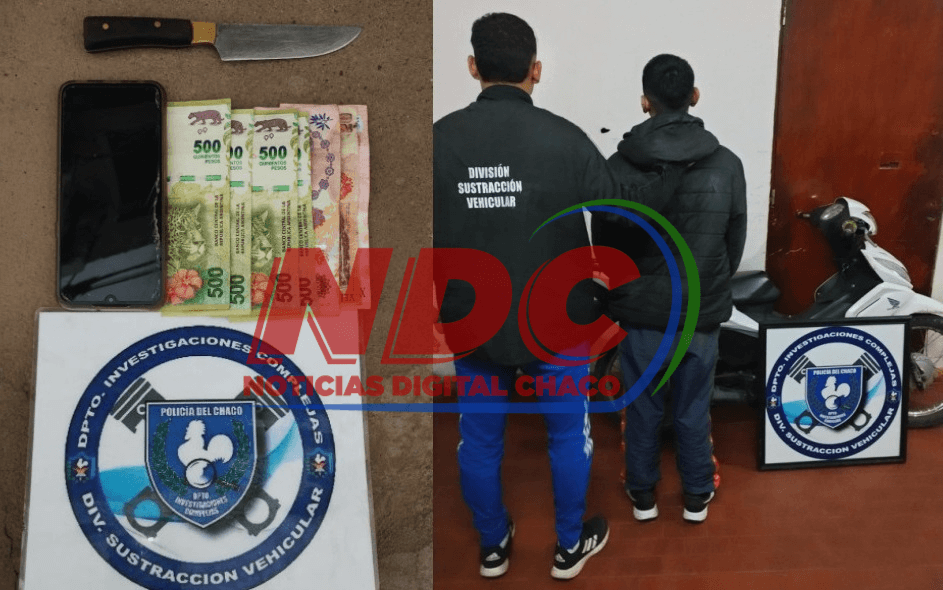 Este pasado viernes alrededor de las 09:15 aproximadamente Personal de la División Sustracción Vehicular, al estar realizando recorridas por Avenida Lavalle 1111, logran demorar a un masculino de 18 años, en el mismo lugar se encontraba una ciudadana de 26 años, quien adujo que momentos antes circulaba en su motocicleta GUERRERO TRIP, 110CC color negro, acompañada de su amiga de 25 años, que de manera imprevista se le apersono esta persona demorada, en una motocicleta marca HONDA WAVE 110CC, color blanca, quien le arrebata su cartera porta celular color marrón, al forcejear caen al asfalto perdiendo ambos el equilibrio de la motocicleta, resultando lesionadas ambas.