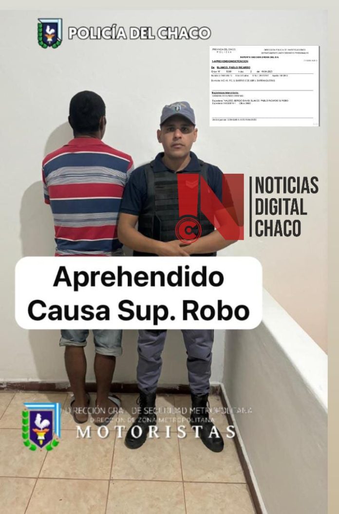 Este contaba con un pedido de captura activo desde el 16 de abril de 2023, según se constató a través del Sistema Si.Ge.Bi. El sujeto era requerido en el marco de la causa “Sup.Robo”.