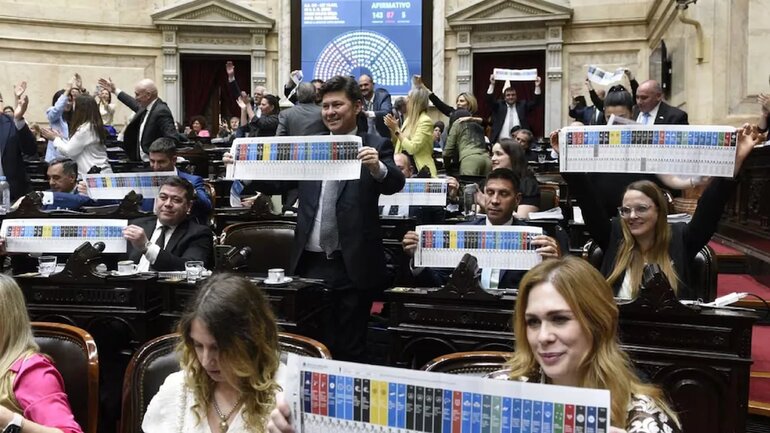 La iniciativa, que impulsaron en conjunto La Libertad Avanza (LLA), el PRO, la UCR, Encuentro Federal, Innovación Federal y la Coalición Cívica, cosechó 143 votos a favor, 87 en contra y cinco abstenciones; Unión por la Patria (UxP) se inclinó por el rechazo, tal como había anunciado, en tanto que el Frente de Izquierda se abstuvo.