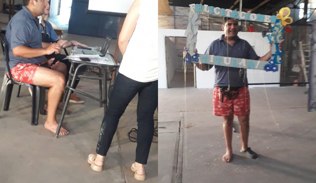 Muchos colegas estaban delante en el padrón, pero nadie mostró interés y cuando vio que lista no se detenía y se aproximaba su nombre se quedó sin conexión: entonces corrió unos 150 metros para seguir la asamblea, perdió una ojota, pero logró el lugar.