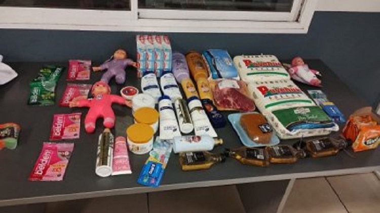 Inmediatamente los agentes de la comisaría Segunda de Resistencia se hicieron presentes en el lugar y secuestraron cuatro botellas de whisky, seis packs de chicles, cuatro potes de crema facial, tres cremas para peinas, siete shampoos, dos paquetes de cepillos, cuatro piezas de queso, tres juguetes, una caja de jugo en sobre, carne vacuna y una bandeja de dulce batata.