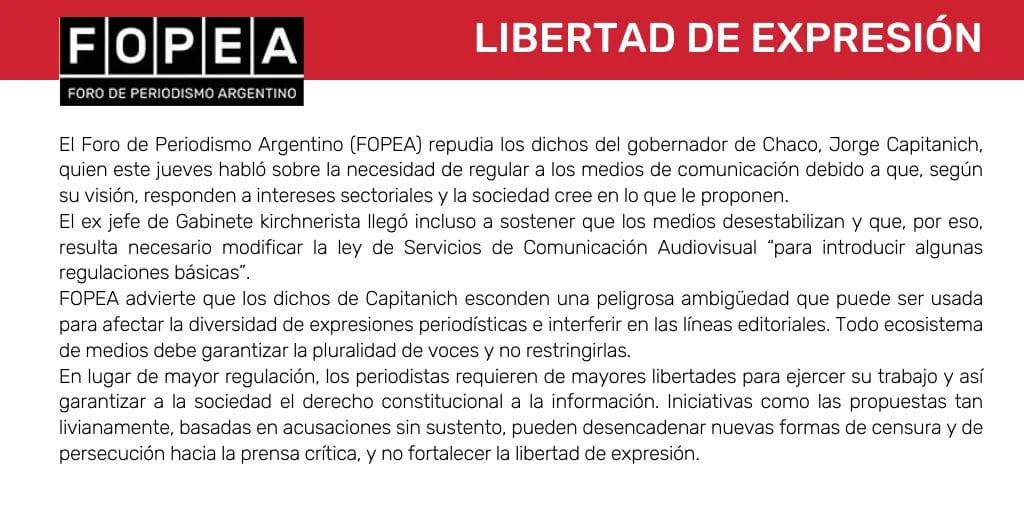 Finalmente, para Capitanich si el oficialismo estará en problemas si en el futuro no “corrige estos esquemas de concentración no solamente de la propiedad sino también de la discursividad, algoritmos, etcétera”.