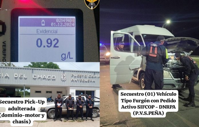 Asimismo, sus pares del Puesto de control Caminero Antequeras secuestraron una camioneta marca Chevrolet modelo S10 adulterada.