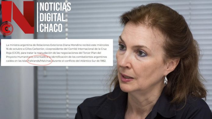 El Gobierno nacional llamó “Falklands” a las Islas Malvinas en un comunicado oficial, luego de una reunión de la ministra de Relaciones Exteriores, Diana Mondino, con el vicepresidente del Comité de la Cruz Roja, Gilles Carbonier.