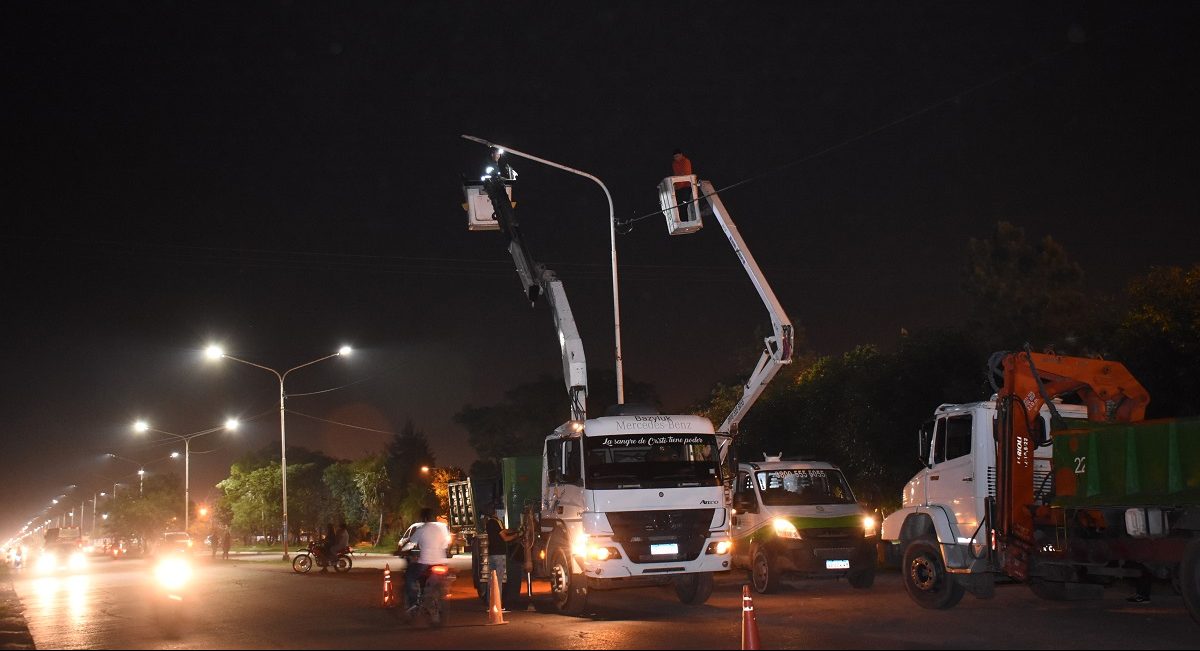 Resistencia realizó un operativo de colocación de alumbrado público led a lo largo de la avenida Soberanía Nacional, para reemplazar los focos de sodio.