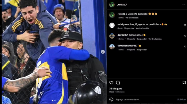 Después del emotivo encuentro, el oficial Toloza compartió en sus redes sociales una publicación en la que escribió: “Un sueño cumplido”, acompañada de la foto del abrazo que con Merentiel que se viralizó rápidamente entre los hinchas y fanáticos del fútbol argentino.