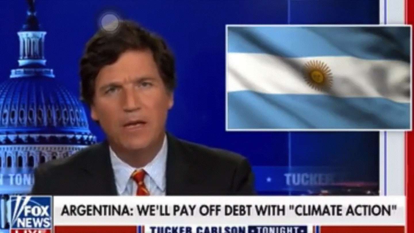 En su irónica editorial Carlson agregó: “Hace varios años, Argentina dejó de pagar una deuda de 46.000 millones dólares con el Fondo Monetario Internacional. Ahora, el presidente del país ha propuesto vincular el pago de esa deuda con ‘inversiones esenciales en infraestructura verde’. En otras palabras, construyendo cosas en su propio país, pero por las razones correctas. Entonces, preocuparse repentinamente por el calentamiento global es una especie de moneda de curso legal. Si le importa lo suficiente, puede saldar sus deudas con él”.