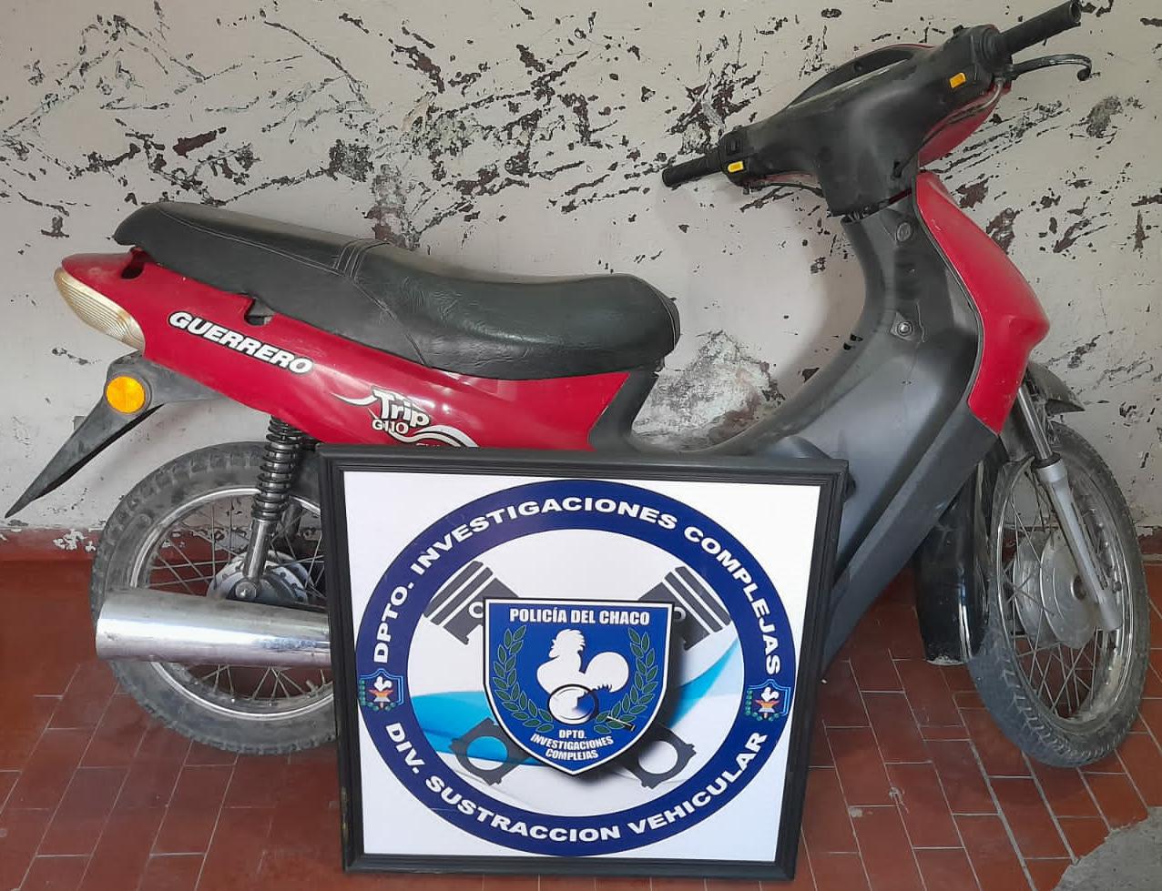 Por calle Remedios de Escalada y Av. Guerrero incautaron una motocicleta Guerrero Trip 110 cc, color rojo, la cual era guiada por un masculino quien dejo abandonado el rodado, para luego darse a la fuga y perdiéndose de vista, detrás del predio de Reciclado de chatarra.