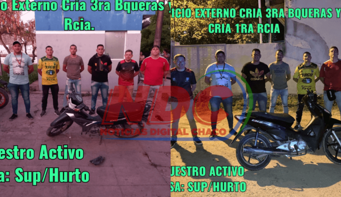 El pasado viernes alrededor de las 19:00 horas, personal del Servicio Externo de comisaría Primera Metropolitana con Externos de Comisaría 3ra Barranqueras, al realizar tareas investigativas por inmediaciones de calle Lapacho y Fortín Alvarado, logran el secuestro de una Motocicleta, Marca YAMAHA, modelo CRYPTON, tipo 110 cc, Color gris, la cual presentaba pedido activo de secuestro en causas Sup. Hurto, no siendo posible la demora del conductor el mismo al notar la presencia policial se desprende del rodado, dándose a la fuga.