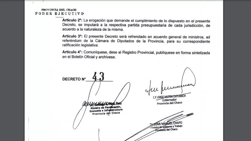 Lo curioso es que el decreto, firmado en acuerdo de ministros, no fue publicado en el sitio oficial del Gobierno del Chaco, sino reservado como ya ocurrió en otras ocasiones.