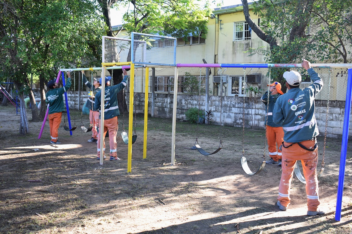 Por su parte, el subsecretario de Infraestructura y Equipamiento Urbano, Marcos Pereyra, dijo que a través de esta “modalidad que propone el intendente Gustavo, se pintaron los juegos, realizaron la limpieza del sector y el desmalezamiento, la pintura interna y externa del establecimiento”. Asimismo indicó que “se calcula que demorarán 15 días los trabajos, en la medida en que se pueda avanzar en la pintura de cada aula por el tema de las clases que se van dando”.