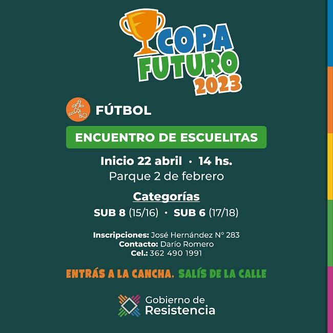 Tal como había sido anunciado por el titular del gobierno de la ciudad de Resistencia, Gustavo Martínez, este fin de semana se volverán a vivir toda la emoción, diversión e inclusión del deporte social a través de la Copa Futuro; uno de los programas más significativos en su tipo del país, que contiene a miles de niñas, niños y adolescentes a través de propuestas deportivas y con el lema “entrás la cancha, salís de la calle”.