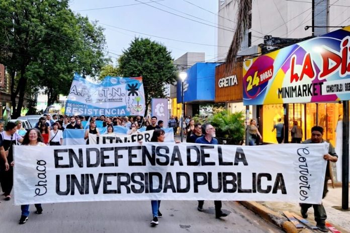 “Milei viene a destruir un sistema de vida que tenemos los argentinos, que en ciencia y educación tiene desde 1880 con la Ley 1420, desde 1918 con la Reforma Universitaria o desde la creación del Conicet”, indicó.