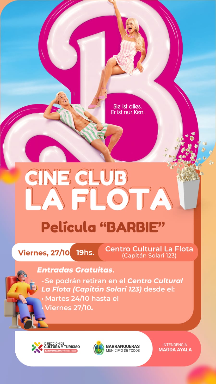 Con acceso libre y gratuito podrán ser parte de una tarde a modo “Barbie”. Podés pasar a reservar tu entrada en el Centro Cultural La Flota (Capitán Solari 123), hasta el viernes 27 para disfrutar de la nueva función que se programó para las 16 horas. Es así que el viernes habrán dos funciones a las 19 horas (con entradas agotadas) y a las 16 horas.