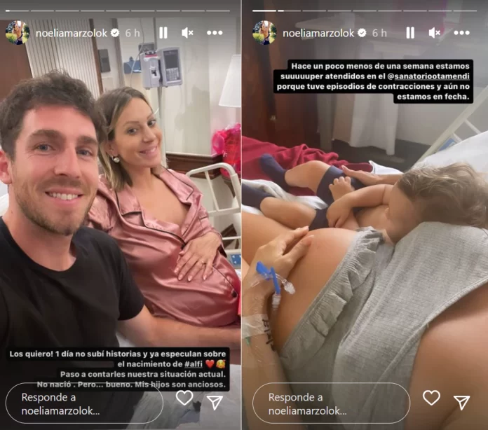 En otra historia, contó que están “super atendidos” por el Sanatorio Otamendi hace un poco menos de una semana. “Tuve episodios de contracciones y aún no estamos en fecha”, explicó con una postal que muestra a su hijo durmiendo al lado suyo.