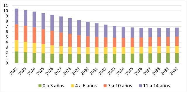 | Franjas / Años | 2022 | 2025 | 2030 | 2035 | 2040 |