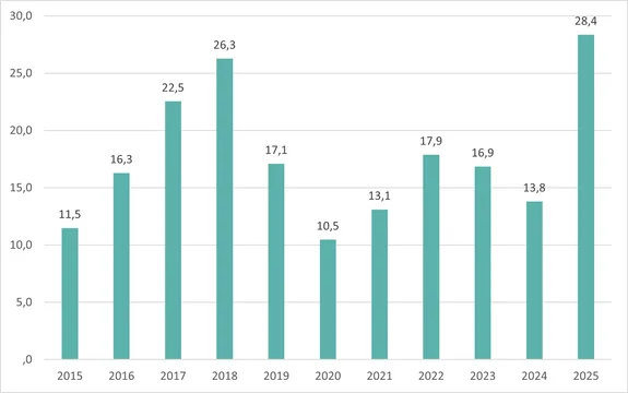 Si se incluyen juegos de mesa, artículos de aire libre y artículos de fiesta, el volumen total asciende a 28,4 millones de kilos y el año actual se perfila como el año de mayor ingreso de productos en dos décadas (por encima del pico en 2018).