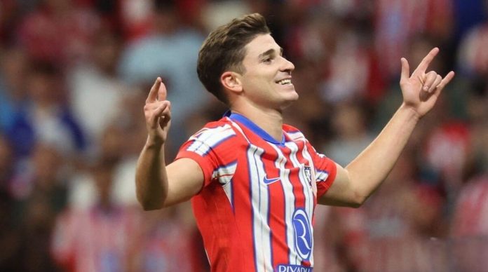 Julián Álvarez finalmente se sacó la espina y logró su primer gol con la camiseta del Atlético de Madrid para sellar la goleada del triunfo por 3 a 0 frente al Valencia por la quinta fecha de La Liga de España.