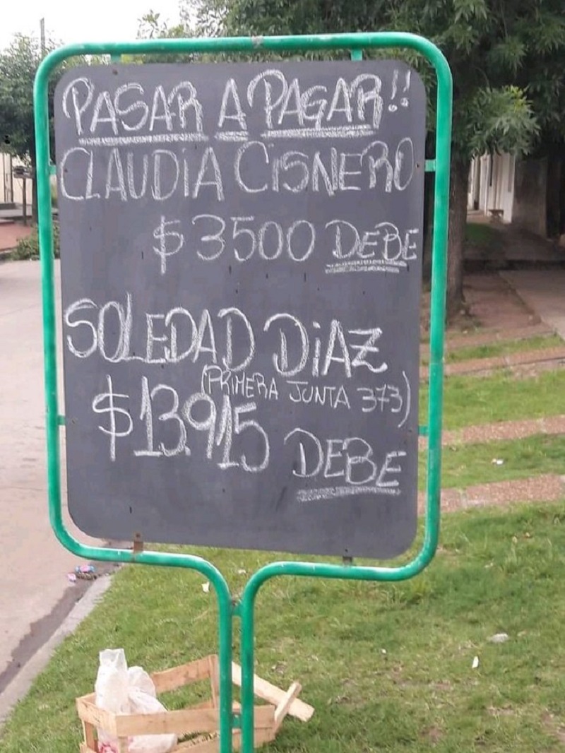 También ocurre que los escrachos a los malos servicios suelen hacerse virales. En Twitter, principal plataforma de descarga donde reina el humor negro, los memes y los GIFS, han circulado muchas fotos de tortas con hongos, comidas en mal estado, cuentas de restaurantes con frases inusuales y más escraches a restaurantes, bares y supermercados, Pero esta vez ocurrió a la inversa. Lejos de querer proteger a sus clientes, el dueño de un kiosko se cansó de que le deban dinero y bajo un cartel en la vía pública escrachó a sus deudoras.