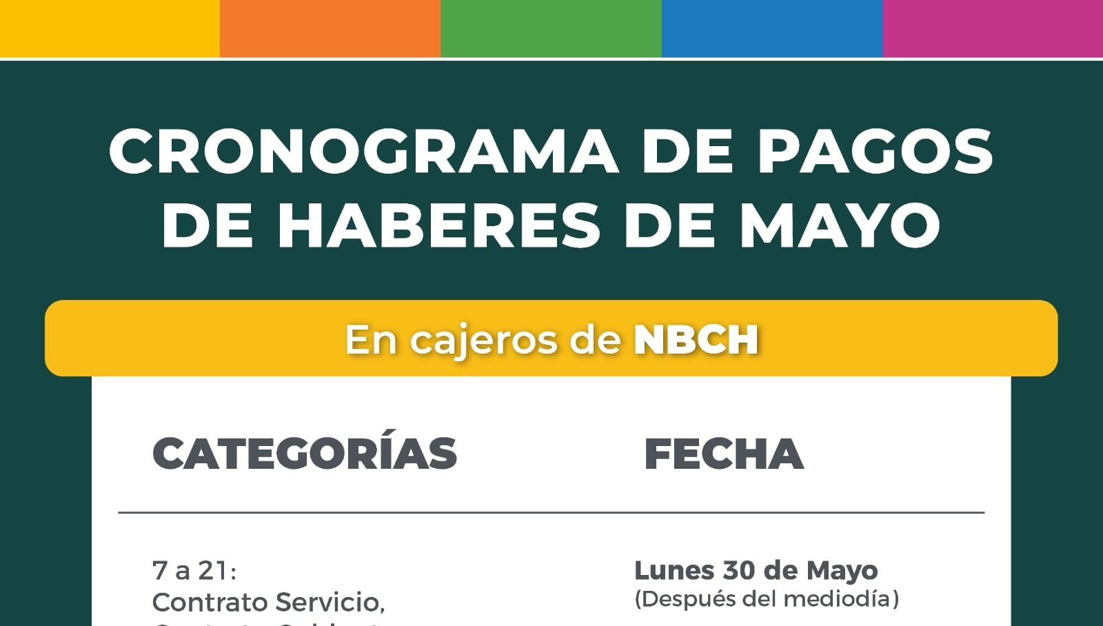 Resistencia informa que este lunes 30, después del mediodía, estarán depositados en los cajeros del Nuevo Banco del Chaco los sueldos del mes de mayo para la totalidad de sus agentes municipales.