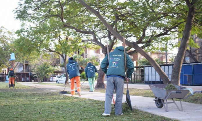 La intervención se basó en barrido manual tanto del espacio público como de los pasillos del barrio, recolección de residuos y poda responsable.