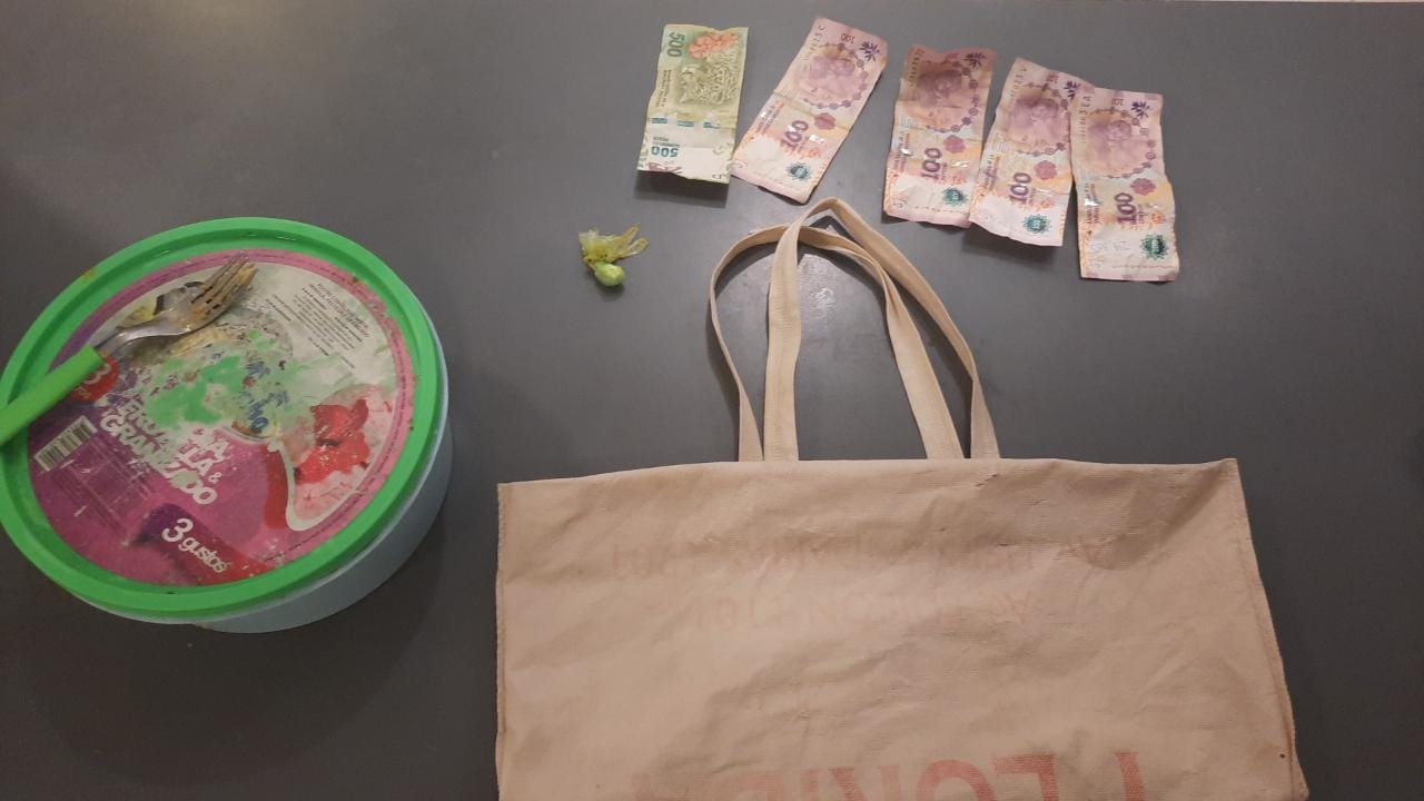 Allí el llavero en turno procedió a realizar la inspección correspondiente sobre un pote de helados hallando un envoltorio de nylon, con una sustancia de color blanquecina. Por ello el ciudadano fue demorado y se solicitó inmediatamente la presencia de personal Drogas Peligrosas, quienes realizaron la prueba de campo arrojando positivo a Cocaína. Además, hallaron $900 pesos.