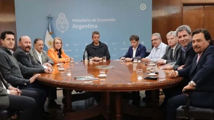 Tanto durante el encuentro previo como en la reunión con el excandidato presidencial, los mandatarios provinciales se mostraron en alerta por el anuncio de la finalización de la obra pública y por el futuro de las cuentas públicas provinciales si se recortan transferencias nacionales.
