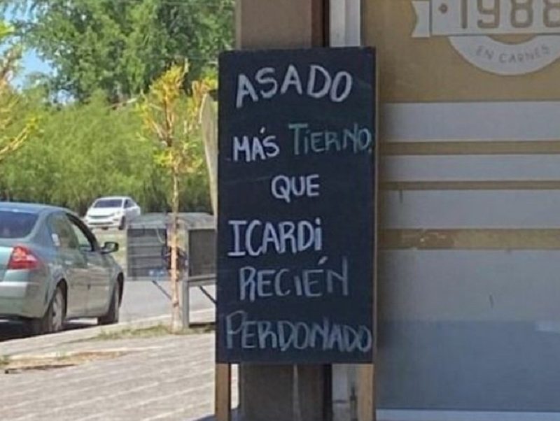 “Argentina, el mejor país del mundo”, publicó un tuitero junto con la foto de un cartel pizarra apoyado en lo que parece ser una carnicería. En él se puede leer el mensaje: “Asado más tierno que Icardi recién perdonado”.
