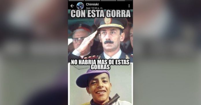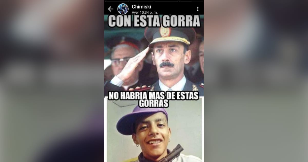 Una vez que se publicó la imagen del escándalo desde el número de celular del jefe de la Unidad Regional XI, de Aristóbulo del Valle, los contactos telefónicos de Chimiski pudieron observar la foto del condenado genocida Jorge Rafael Videla uniformado con gorra de diario, haciendo la venia y una frase que dice: “con esta gorra no habría más de estas gorras”, para dar continuidad a la imagen de un adolescente con gorrita, aros, cejas depiladas, campera deportiva y un arma en la mano, como representando la imagen de un pibe chorro.