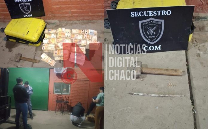 Sin embargo, la presencia policial en la zona permitió una rápida reacción. Al verse acorralado, el delincuente arrojó una valija de color amarilla, en cuyo interior se encontraban la suma de $24.740.600 en efectivo, un martillo tipo masa y un corta hierro, herramientas utilizadas para perpetrar el ilícito.