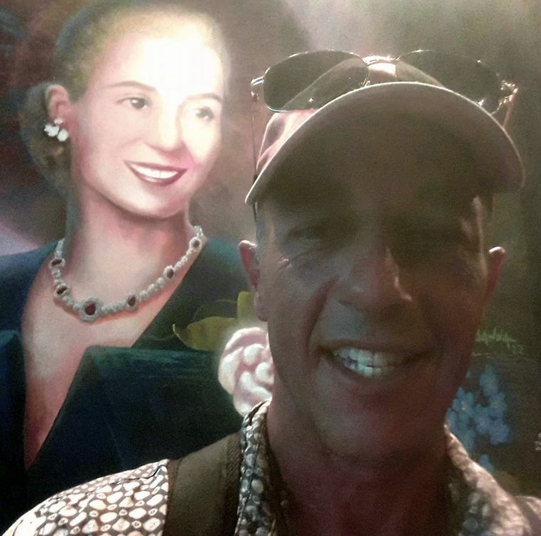 Entre ello se destaca una foto con obras de arte de Evita y también junto a Sergio Massa y Andrés Larroque.