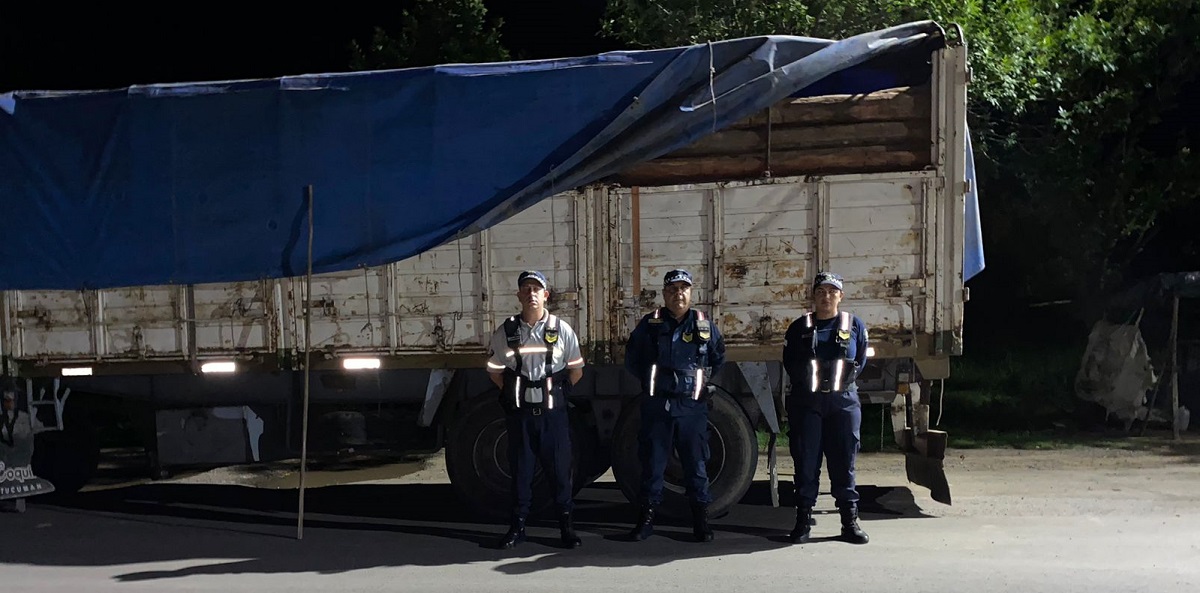 Al momento del control, su conductor de 38 años exhibe guía forestal exigible, la cual los uniformados constataron que le faltaba el sello de egreso de la provincia de Santiago el estero como así también el sello de ingreso a esta provincia.